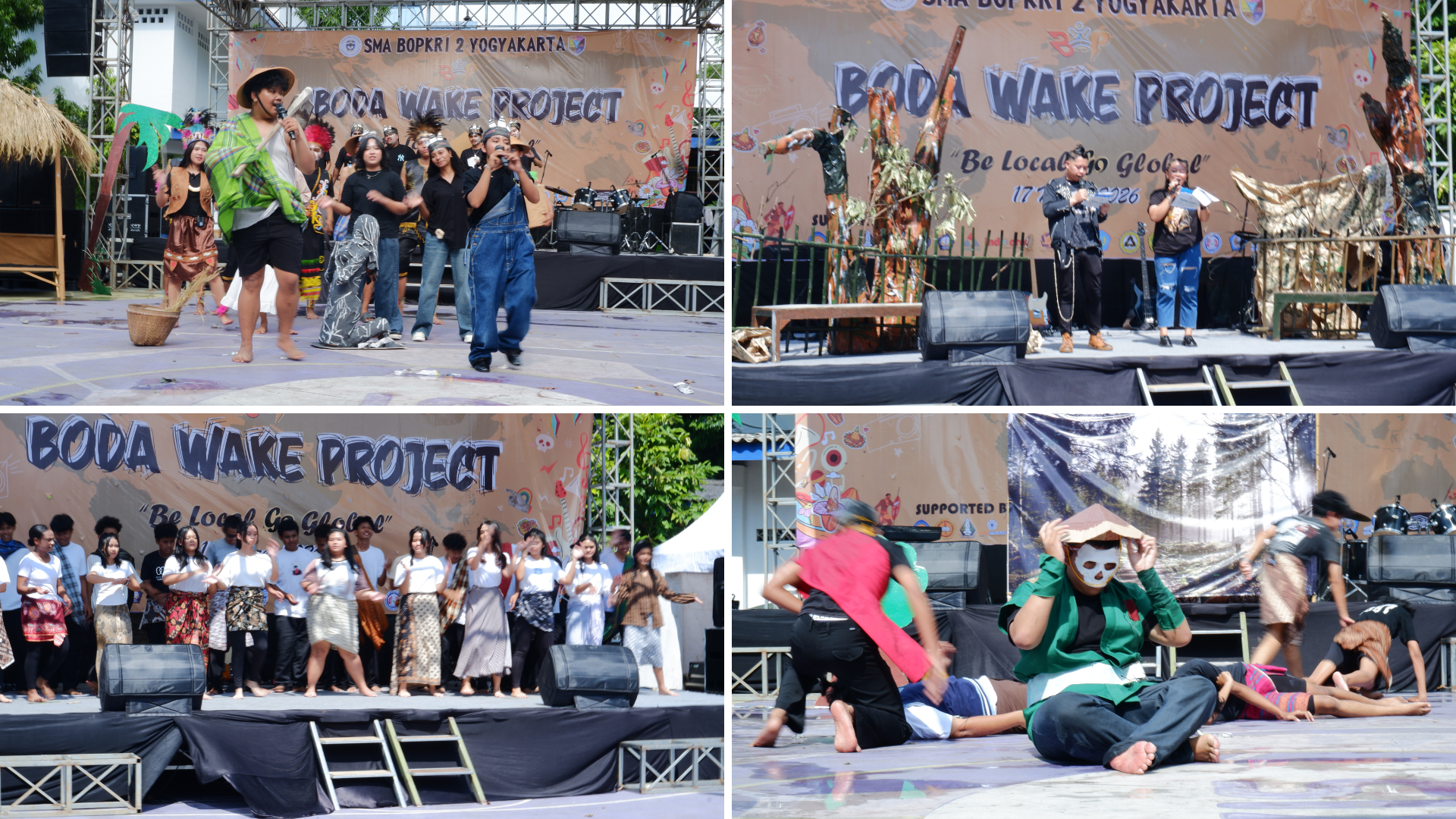 SMA BOPKRI 2 Yogyakarta kembali menyelenggarakan salah satu agenda tahunan yang paling dinantikan, yaitu BODA Wake Project (BWP). Kegiatan ini merupakan ikon sekolah yang menjadi ruang aktualisasi bagi siswa dalam mengembangkan kreativitas, jiwa artpreneurship, serta kemampuan riset secara terpadu. BWP menghadirkan kolaborasi karya dari siswa kelas X, XI, dan XII, serta didukung oleh kehadiran BODA Edufair yang melibatkan 17 universitas. Diselenggarakan pada 17 Maret 2026 pukul 12.30–17.30 WIB, kegiatan ini tidak sekadar menjadi ajang perayaan, melainkan juga wujud kepedulian terhadap berbagai isu sosial di masyarakat sebagai implementasi nilai-nilai ke-BOPKRI-an. Mengusung tema “Be Local, Go Global”, para siswa didorong untuk menampilkan karya terbaik yang berakar pada kearifan lokal, namun memiliki daya saing di tingkat global. Tema ini menjadi semangat bersama untuk menunjukkan bahwa potensi lokal mampu berbicara di panggung dunia.